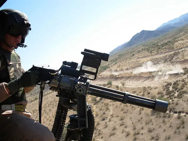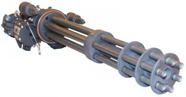 La Minigun es una ametralladora multicañón con una elevada cadencia de fuego (miles de balas por minuto), emplea el sistema Gatling de cañones rotativos accionado por un motor eléctrico alimentado desde una fuente de energía externa.