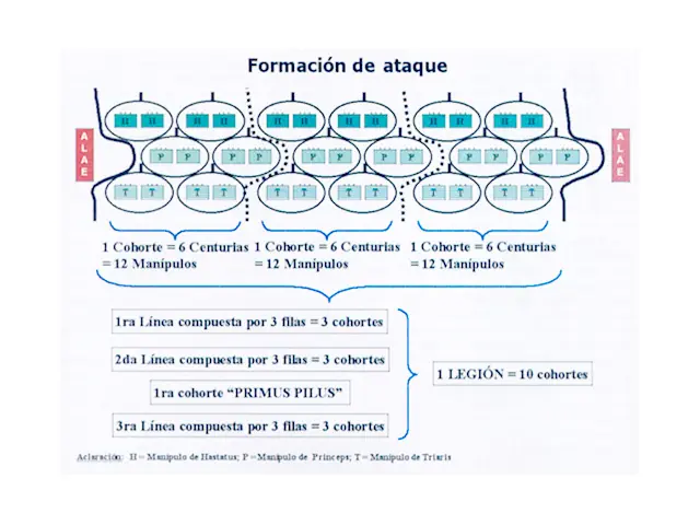 La unidad más pequeña capaz de emprender cualquier acción era formada por dos centurias y recibía el nombre de Manípulo o puñado.