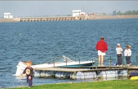 Parquización, balnearios, quinchos, campings. En su margen izquierda, hay un importante hotel de 4 estrellas, un club dedicado a la náutica ( veleros, regatas, canotaje, y wind surf, etc,) e incluso buceo flubiolacustre. Resultando así un lugar de atracción turística cálida y excitante durante todo el año, que incluye resorts de esparcimiento familiar, con una Villa Residencial.