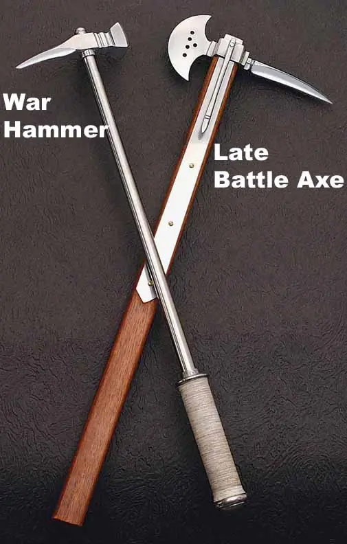 Martillo de guerra (Warhammer) a la izquierda, hacha de batalla (Battle ax)