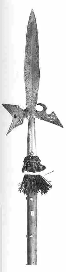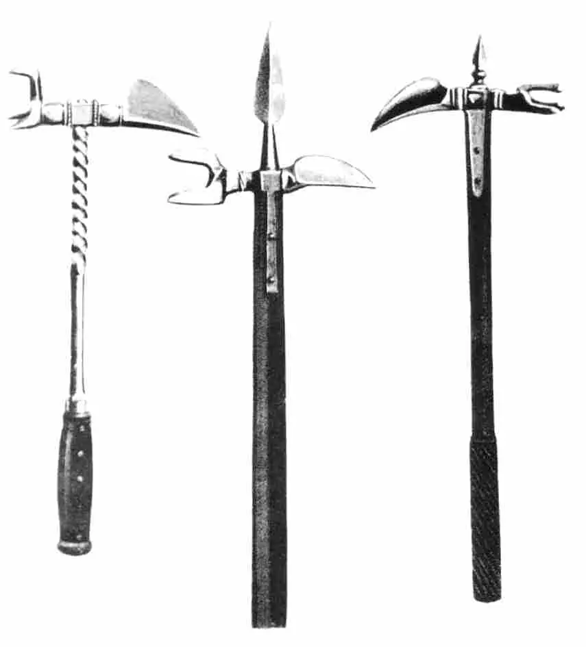 Los soldados de infantería aprendieron primero a situarse tras estacas de madera clavadas en el suelo para derribar a la caballería. Más tarde aprendieron a desplegar lanzas, picas y otras armas largas para conseguirlo. Esto daba capacidad de movimiento a la formación y permitía el transporte de las estacas anti-caballería. En una escaramuza, las armas añadidas al extremo de las lanzas se utilizaban ya para derribar a los jinetes de sus monturas tirando de ellos o empujándolos, ya para causar heridas al jinete o al caballo. Aunque los hombres que llevaban armadura no quedaban indefensos una vez derribados, como han pensado algunos, sí se encontraban temporalmente en desventaja hasta que lograban levantarse.