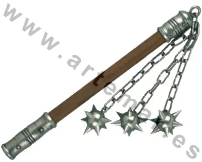 El Mangual, o Látigo de armas,eate tipo de mazas de guerra deriva directamente del mayal utilizado en la agricultura medieval esta arma compuesta de una "vara" Usada en la Edad Media, estaba compuesta de unas cadenas de hierro que finalizaban en bolas metálicas de pinchos, sujetas por su otro lado por anillos fijos a un mango de madera, como el de los mayales.