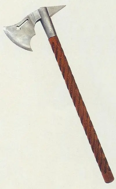 Los pueblos germánicos fueron los primeros en usar la hacha como arma en combate, aunque los francos también la utilizaban pero como arma arrojadiza (3 o 4 metros a lo sumo). Los carolingios usaban hachas de 1m y 50 cm, verdaderas moles que necesitaban de las dos manos para poder moverlas. Los ingleses la usaron por primera vez en la batalla de Hastings en 1.066, y la caballería francesa en el siglo XII, durante las cruzadas.