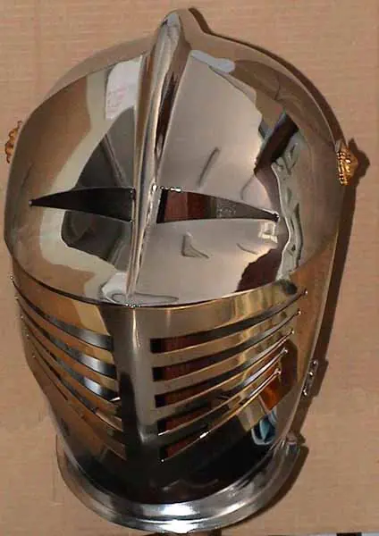 Los cascos también evolucionaron desde simples diseños cónicos a grandes cubos de metal, tras lo que se convirtieron en grandes piezas esculpidas para desviar las flechas. Posteriormente, los cascos pudieron ensamblarse al resto de la armadura.
