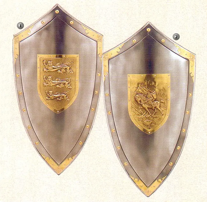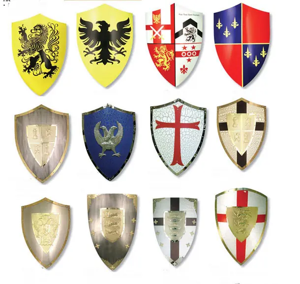 Reproducción de los escudos medievales. Los escudos servían para protegerse en las cruentas batallas que se libraban en la época medieval.
