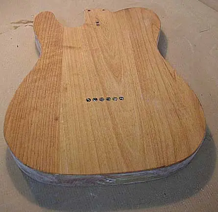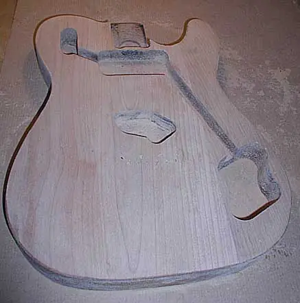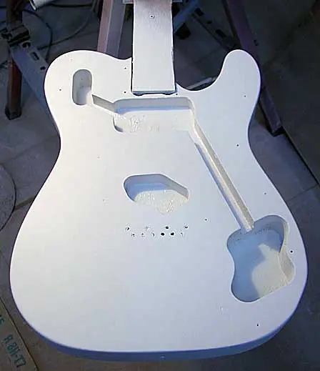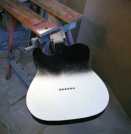 Todos entendemos que en las guitarras con acabado sunburst y otros acabados transparentes, ese tapaporos ha de ser también transparente para que deje ver la veta de la madera, pero si miráis en algunas webs especializadas en guitarras vintage, como por ejemplo la fantástica http://www.provide.net, veréis que las guitarras Fender con acabado sólido llevaban una imprimación de color blanco. De ahí que muchas de aquellas viejas Fenders, cuando se iban desgastando o por causa de golpes o roces, dejaban aparecer esa imprimación blanquecina. Por otra parte, el “color actual” que muestran algunas de aquellas viejas guitarras habría sido imposible, entre otras cosas porque el color real de algunas de ellas es una superposición del resultante del envejecimiento (amarilleado) de las viejas nitros traslúcidas sobre la imprimación blanca. Yo soy uno de los que le gustan que la guitarra a medida que se va gastando, muestre esa base blanca debajo del color final.