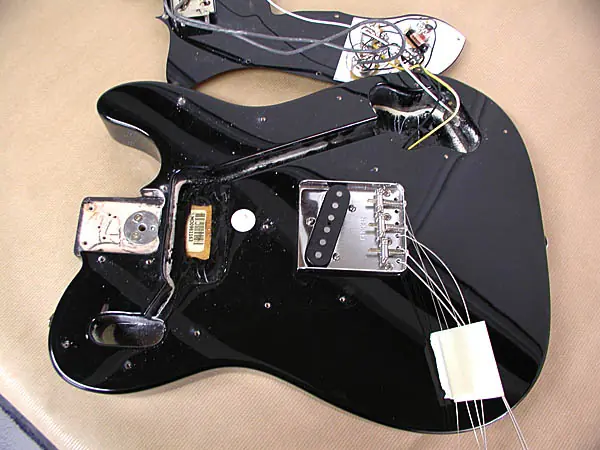 Por si alguien quiere ver como es el routing de una tele custom. Observad ese gran routing en forma de “S” que conecta cavidad de controles con la pasti de mástil y la cavidad del switch