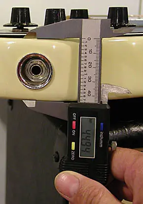 Hay quien cree equivocadamente que utilizar una imprimación empeora la “calidad sonora” de un acabado. Craso error. Se puede (y se debe) aplicar una imprimación a una guitarra de manera que el grueso total de esta capa de pintura no tiene porqué ser mayor que un folio (hablamos de micras) Ya lo comprobaremos al final con el calibrador. Ahora y antes de empezar a pintar, veamos lo que nos indica de nuevo la herramienta: