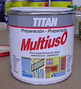 Sigamos con lo nuestro. ¿qué imprimación utilizar?. Hay muchas marcas en el mercado y cada fabricante de pinturas formula productos para una u otra utilidad o superficie. Haced pruebas si queréis, pero yo ya he hecho las mías y tras muchos ensayos y experiencias a lo largo de algunos años, hace un tiempo que uso esta: