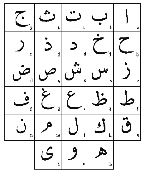 ا ب ت ث ج ح خ د ذ ر ز س ش ص ض ط ظ ع غ ف ق ك ل م ن ه و ي ة ء أ إ