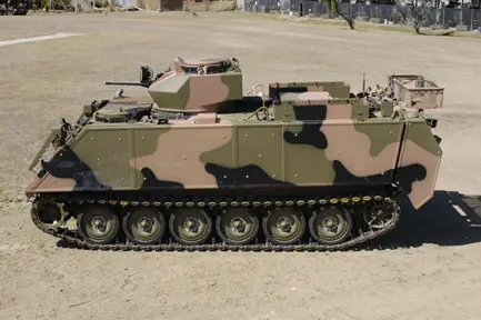 M-113 de las fuerzas de defensa de Israel, protegido por blindaje reactivo.