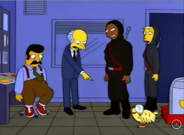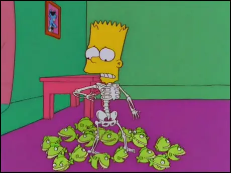 - Krusty: Hola Bermundo, te tengo una adivinanza, en que se parece un cuervo a un grano..