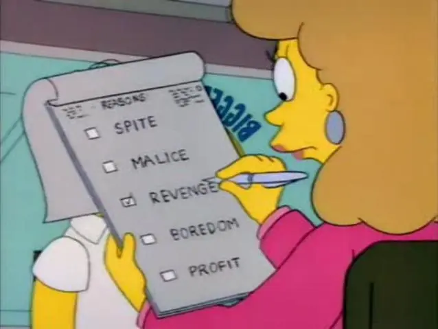"Bart, recuerdas cuando tu perro se comió mi pescadito y tu me dijiste que nunca había tenido uno? Y por que tenia la pecera eh?? Por que tenia la pecera??"