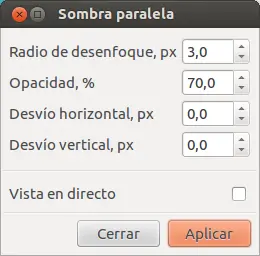 Para la sombra, utilizo el filtro sombra paralela, con los siguientes parámetros: