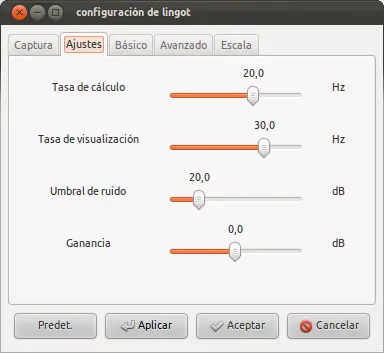 Como ya hemos mencionado anteriormente, Lingot es altamente configurable a través de su interfaz gráfica de usuario. Es posible cambiar cualquier parámetro mientras que el programa se está ejecutando, y sin necesidad de editar cualquier archivo.
