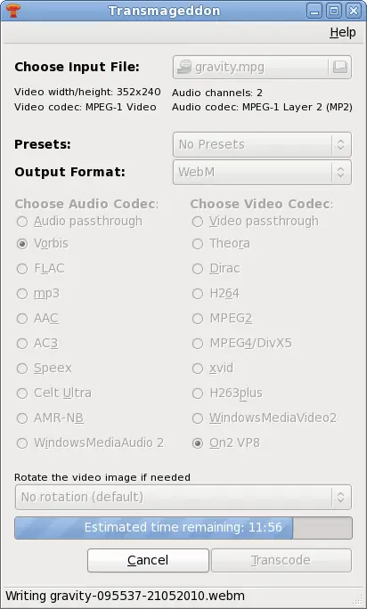 Transmageddon es un transcodificador de vídeo para sistemas Linux y Unix construidos con GStreamer.