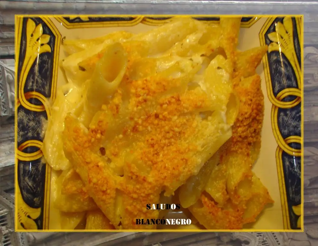 Receta inspirada en los “Macaroni cheese” al estilo americano. La pasta atrapa a la crema en su interior, mientras la superficie se vuelve crocante y dorada por el gratinado. Se puede usar cualquier tipo de pasta corta y hueca (mostacholes, penne rigatti, etc.). La salsa se elabora en base a una bechamel con el añadido de salvia (jamon o panceta opcional), crema, queso semiduro (cheddar, gruyere, fontina), queso blando (brie, mantecoso, cremoso) y se gratina con queso rallado y manteca (mantequilla).