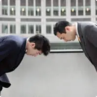 En Japón el saludo consiste en una ligera inclinación de cabeza o una leve reverencia. Es un gesto de humildad y respeto ante la otra persona. Incluso por respeto no suelen mirar fijamente a su interlocutor y esto se acentúa más cuanta más diferencia social existe entre ambas partes.