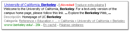 luego aparece una lista de índices proporcionados por google como la siguiente: