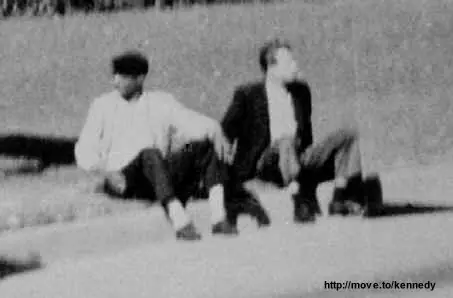 Este es el fotograma 288 del film de Zapruder en el que puede verse como la mujer conocida por Babushka Lady se encuentra detrás de Charles Brehm y su hijo. A la derecha del fotograma comenzamos a ver a Jean Hill (mujer del vestido rojo). Este fotograma esta tomado menos de dos segundos antes del disparo fatal a la cabeza. Si observamos detenidamente los movimientos de la mujer en el film nos damos cuenta de que Babushka Lady está filmando la caravana presidencial con una cámara de cine, probablemente una 8 mm como la de Abraham Zapruder, pero desde el lado contrario.