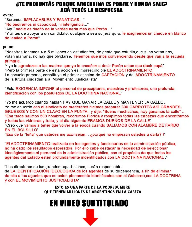 Del Taringa! originalprimero que nada peron era militar asi que esperar que sea democratico es estupido,ademas hay que situarse en la epoca hay cosas que hoy serian intolerables pero en esa epoca no ,y para llevar a cabo un proyecto politico y que sea exitoso todos tienen que tirar para el mismo lado por eso pretendian que todos simpatisaran con el peronismo en fin ,peron no fue un presidente que estubo en la casa rosada para quejarse de la pesada herencia del gobierno ante…
