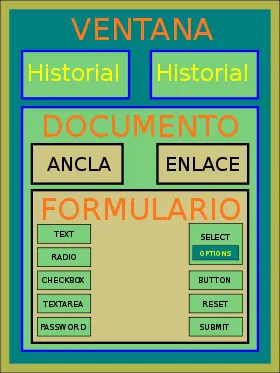 Lo que vamos a ver ahora es cómo se organiza la jerarquía de objetos en el DOM y mostrar cómo se puede acceder a ellos insertando un código javascript en cualquier lugar de la página web.