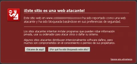 Hasta pudiera parecer que la parte "negativa" de Javascript solo está al alcance de aquellos webmasters que elaboren sitios con el objetivo de hacerse con el control de los internátuas que acaben ahí. Esto no es así. Evidentemente hay sitios creados específicamente para que cuando alguien los visite con un navegador desactualizado (normalmente internet explorer) se infecten los equipos. Pero dentro del hacking y javascript este tipo de técnicas es de las menos comunes ya que Google suele detectar este tipo de script rápidamente y avisa a los internáutas con carteles de este estilo: