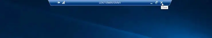 Los controles en el lado izquierdo de la barra te permiten fijar la barra y comprobar la velocidad de conexión. Los controles en el lado derecho de la barra incluyen un botón de minimización para reducir la ventana remota a la barra de tareas, un botón Restaurar hacia abajo para reducir el tamaño de la ventana y un botón Cerrar para finalizar la sesión remota.