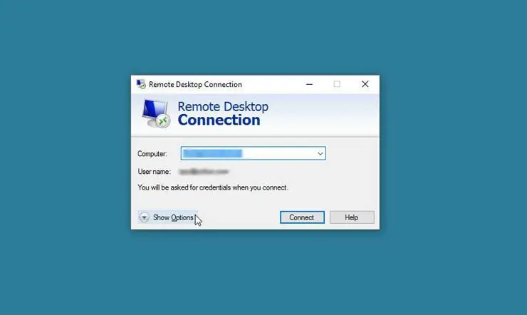 Ahora inicia sesión en la PC cliente, es decir, la PC que deseas utilizar para acceder al equipo remoto. Presiona Win + R. En el campo Abrir en la ventana Ejecutar, escribe mstsc.exe para iniciar la característica Conexión a Escritorio remoto. En la ventana RDC, escribe el nombre o la dirección IP de la PC remota en el campo Computadora. Haz click en el botón Mostrar opciones.