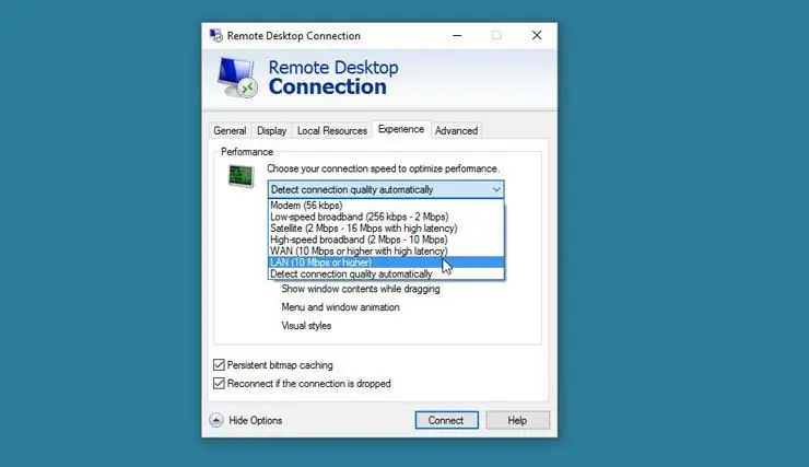 Y en la pestaña Experiencia, puedes seleccionar la velocidad de conexión para controlar el rendimiento.