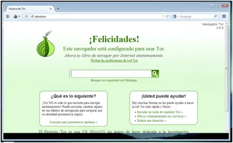 Y tras este paso si todo ha ido bien se os abrirá vuestro navegador TOR dándoos la enhorabuena por la instalación y configuración hecha: