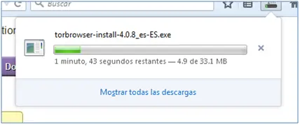 Al dar clic en “DownloadTor Browser” nos descarga un archivo .exe que servirá para nuestros fines, basta con esperar a que termine la descarga, ir al directorio en el que guardamos dicha descarga y ejecutarlo.