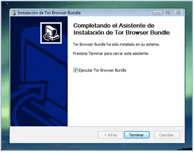 Una vez finalizado, yo dejé marcada la opción “Ejecutar Tor Browser Bundle” y di clic en “Terminar”, inmediatamente después de eso, me apareció la ventana de configuración inicial del navegador Tor.