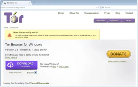 Al momento de escribir esta entrada, el navegador Tor se encuentra en su versión 4.0.8 y como puedes apreciar en la imagen, esta descarga funciona para Windows 10, 8, 7, Vista y XP, así que funciona para la mayoría de los usuarios.