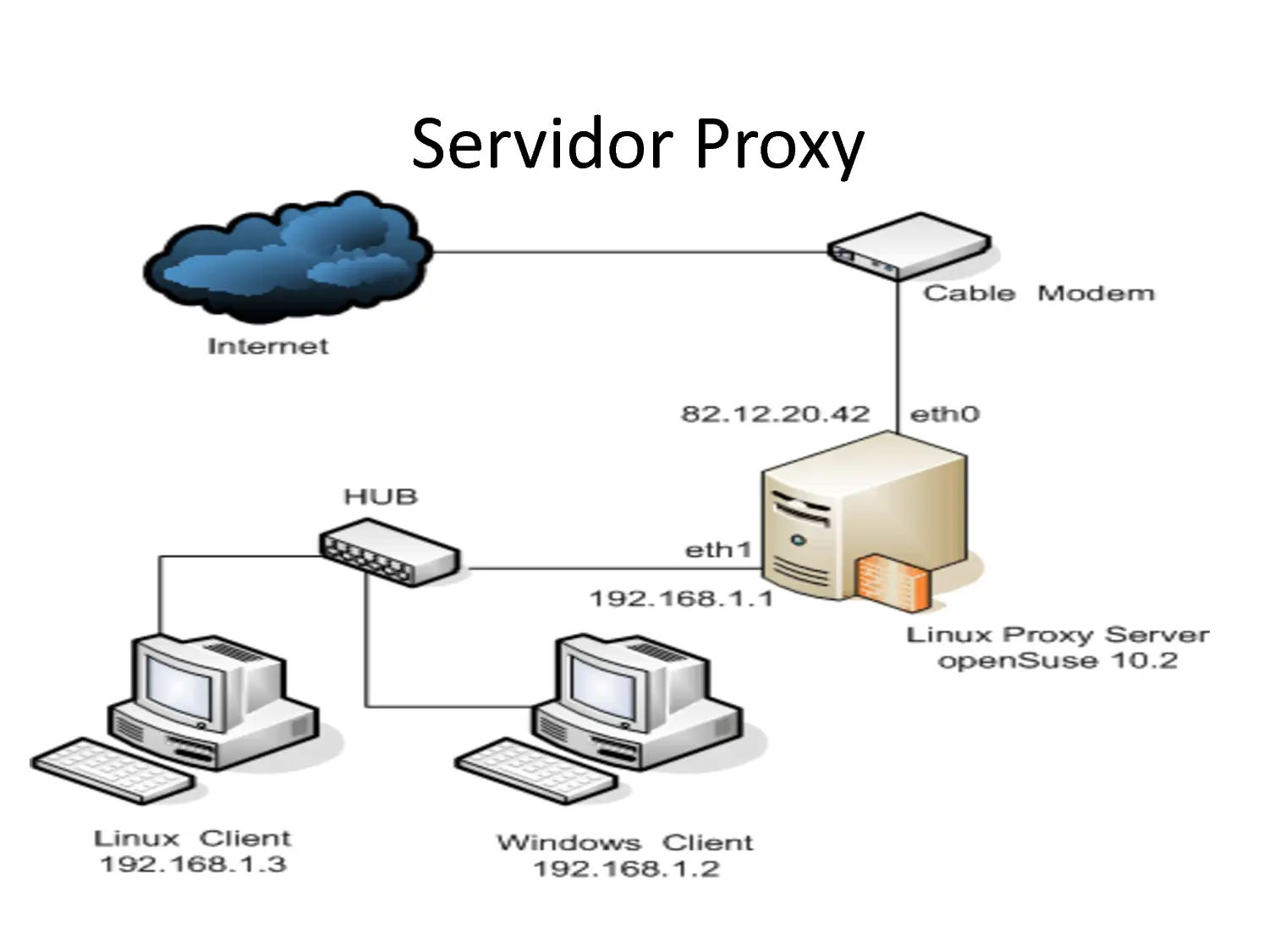 Para los administradores de redes (sobre todo en empresas) este tipo de servidores pueden ser utilizados para que los ordenadores de los empleados no sean los que salgan directamente a internet. Con esto ganan 2 cosas, por un lado pueden filtrar ciertas páginas webs y por otro lado protegen a los usuarios. Para entender cómo se realizan estas dos funciones vamos a ver el esquema básico de conexion con un servidor proxy intermediando