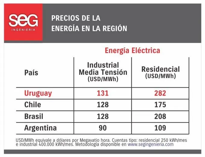 Energía en Uruguay sigue siendo la más cara