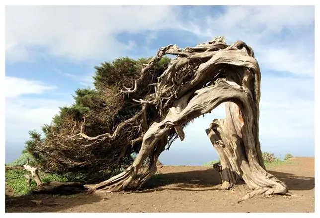 10. Uno de los lugares de las Islas Canarias, llamado El Hierro, nos permite ver este árbol nombrado La Sabina, aunque parezca mentira, la forma de esta especie se debe a los fuertes vientos que azotan el lugar