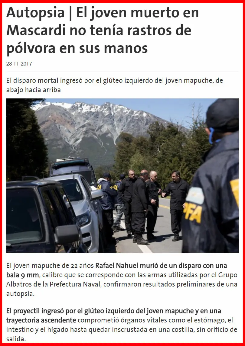 "Los investigadores nucleados en la Sección Etnología, perteneciente al Instituto de Ciencias Antropológicas de la Universidad de Buenos Aires, repudiamos la represión llevada a cabo contra la Pu Lof en Resistencia, en el Departamento de Cushamen, el 11 y el 12 de enero, por Gendarmería Nacional y por la Policía de la Provincia de Chubut. Nos sumamos, de este modo, a los múltiples comunicados de repudio realizados por comunidades y organizaciones indígenas, investigadores, docentes y estudiantes, trabajadores del Estado, agrupaciones religiosas y organismos de derechos humanos.