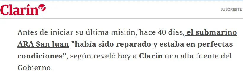 La realidad es que lo que paso con el submarino es responsabilidad entera y exclusivamente del comandante en jefe de las fuerzas armadas y ese es Mauricio Macri y todos los que estan debajo de su mando, para darse una idea si los que gobiernan no se hacen responsables de lo que paso, hagan de cuenta que no tenemos un gobierno esto es desgobierno como minimo pero en realidad le cabe la descripcion de gobierno de ocupacion,
