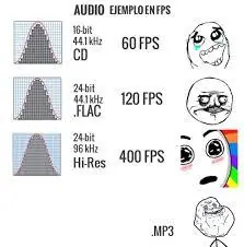en un CD de música, está entandarizado en 44.1kHz/16bit. Es decir, se muestrea con una frecuencia de 44.1 kHz y una cantidad de información de 16 bits.