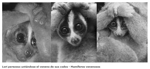 Fabrican el veneno con unas glándulas que tienen en los codos y se lo frotan por el cuerpo usando la lengua y los brazos. También cubren a sus crías con este veneno protector cuando las lamen para limpiarlas.