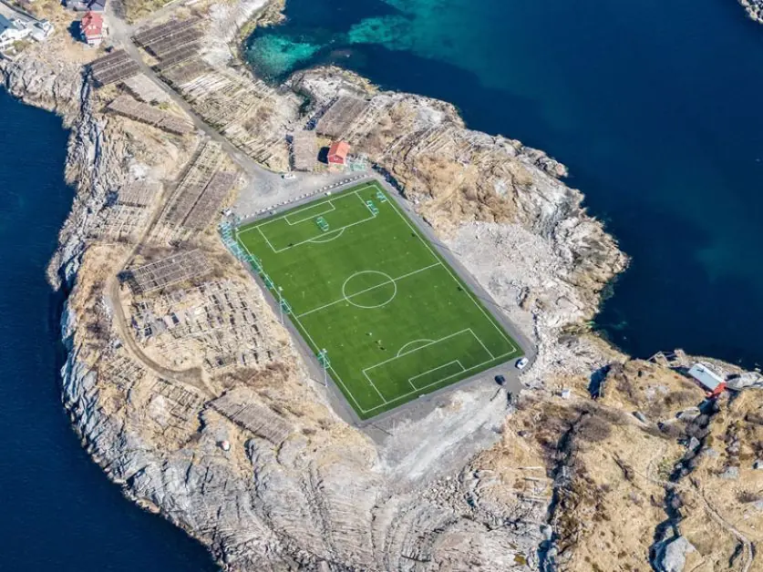 Finalizamos con este sorprendente estadio, que se encuentra localizado en las islas Lofoten,cuya población es cerca de 540 habitantes. Las instalaciones se encuentran rodeadas de diversas colinas rocosas, enviando un aire fresco de montaña, proporcionando un ambiente incomparable. ¿Hermoso, no?