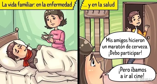 Casi todos los eventos divertidos que menciona el hombre tienen que ver con sus amigos. A veces habla mal de los amigos que se alejan del grupo. Por ejemplo, aquellos que prefieren estar con su familia antes que tomar unas cervezas en el bar.