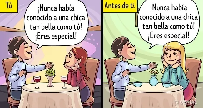 Los cumplidos son como abonos: en dosis sensatas nos ayudan a florecer y en abundancia provocan sospecha. La admiración infinita en la primera cita es un fenómeno extraño. Probablemente muchas chicas ya han escuchado las mismas frases. No confundas los sentimentos sinceros con elocuencia.