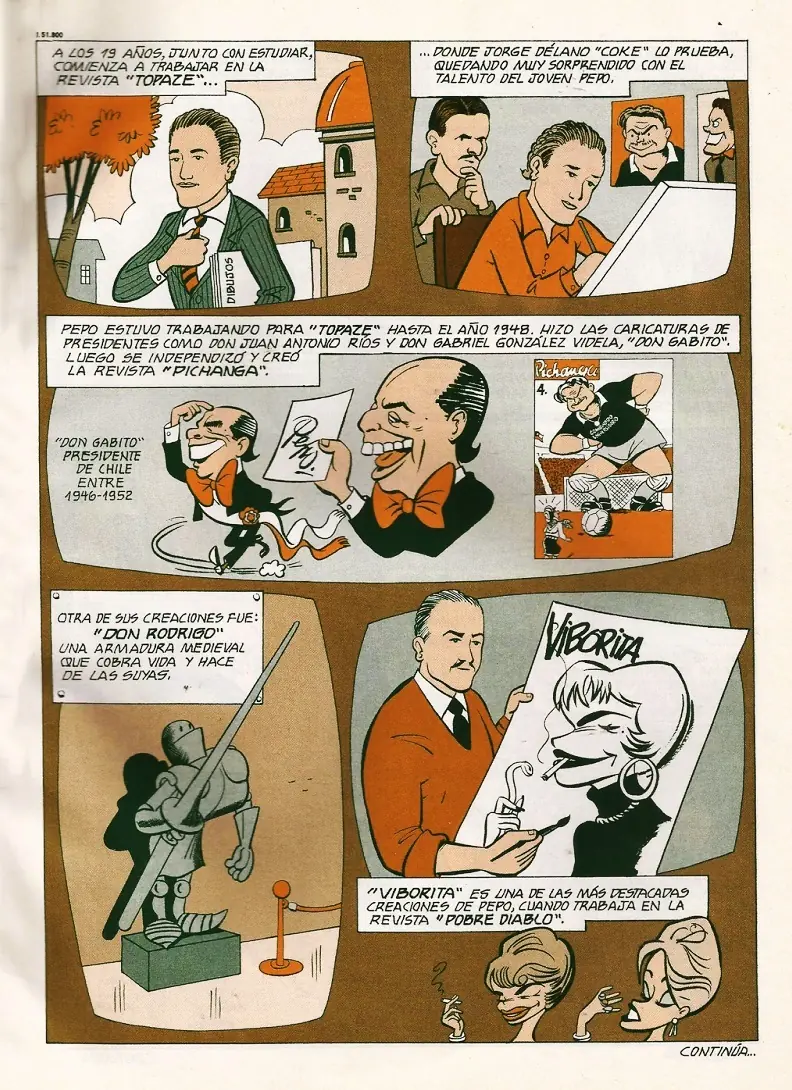 En 1946 creó y dirigió la historieta picaresca Pobre Diablo donde se crearon personajes como Don Rodrigo y Viborita. Colaboró en otras muchas revistas (Can Can, Ganso, El Peneca, El Pingüino, El Saquero, Pichanga, Pobre Diablo, etc.) e hizo también varios trabajos publicitarios.