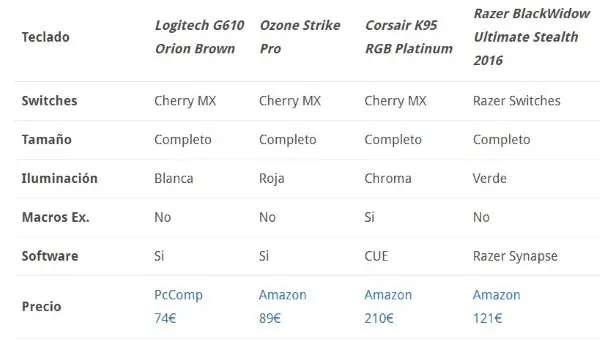 Comparativa de Teclados mecánicos baratos