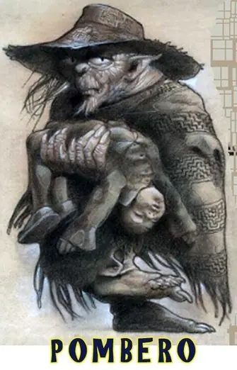 42. El Pombero (Chaco). También se lo conoce como “el protector del bosque”. El Pombero es un tipo de duende con apariencia desagradable y de tamaño pequeño. Lleva sombrero de paja. Suelen dejarle ofrendas como tabaco, caña, miel o vino para que cuide los lugares de malvivientes y tragedias.