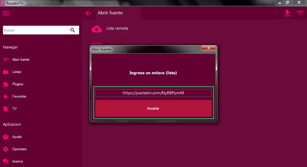 5-En donde dice “Playlist URL” escribe la URL de la lista de canales que vayas a usar.