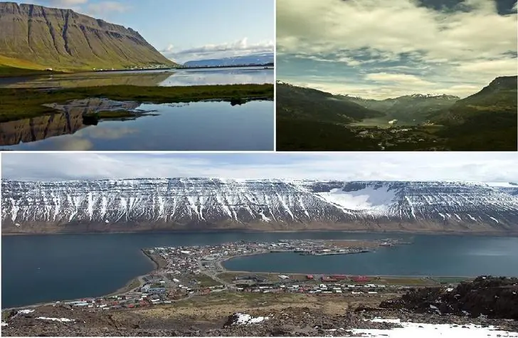 Cuenta el Landnámabók que en ese lapso de tiempo Floki ascendió a la cumbre de la montaña más alta que encontró, que los expertos creen que pudo ser el Nónfell (una colina de 473 metros situada en los Fiordos del Oeste), y desde allí contempló todo el contorno, incluyendo el gran fiordo Ísafjörður, que por entonces aún conservaba su morfología glaciar y estaba lleno de hielo en movimiento. Al parecer, la visión de Ísafjörður fue lo que incitó a Floki a rebautizar la isla con el nombre de Ísland (o sea, Islandia, Tierra del Hielo).