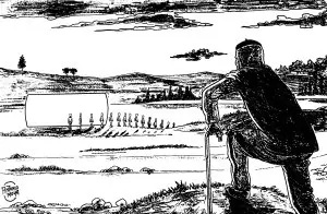 Huyó despavorido mientras aquellos seres continuaban persiguiéndolo… Tras tres kilómetros alcanzó el pueblo, los seres habían desaparecido… Los co-propietarios del melonar, los Chícharos, sin dudar del relato de Juan se desplazaron armados hasta el pozo artesiano… allí sólo quedaban las mudas pisadas de un ejercito de diminutos pies…